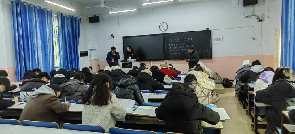 为加强我院学风建设,严肃考风考纪,我院开展了2023—2024学年第一学期期末考试巡考工作。自1月3日开考以来,我院党政领导班子成员带领教学秘书,持续深入考场进行巡视。
