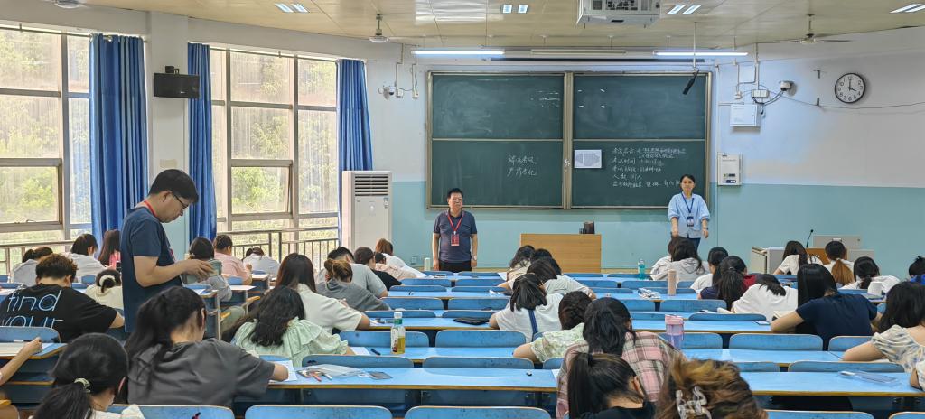为加强考试的组织管理,扎实推进考风考纪建设,6月19日,我院党政领导班子成员带领教学秘书、辅导员,深入期末考试现场进行巡考。