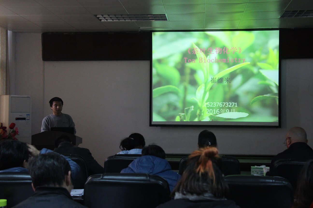 张在宝、许威、丁鹏、李金涛、黄洁萍等八位老师先后上台对相应课程进行汇报讲解。张在宝结合当下热点话题――防治艾滋病,向大家介绍了HIV病毒,讲述了HIV病毒的相关生物知识、抗逆转录药物以及艾滋病的常规治疗方法。丁鹏、崔继来则以茶叶为研究对象,联系生物知识,讲述了茶叶的功能以及其对人类健康的作用。许威从生物制药工艺学导入,将中药与中西药结合讲解。聂磊、衡双平分别以“组织工程构建之药物治疗”和“线粒体的分离与观察”为课题,汇报了他们的教学计划。各新进教师结合PPT,就各自的课题从教学目标、教学过程、教学方法等方面展示了他们的教学思路。