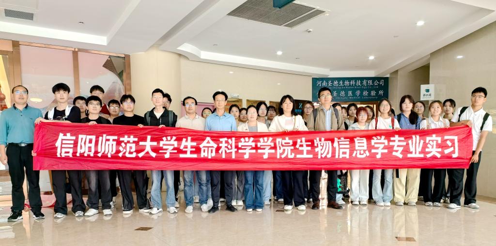4月27日至30日,在学院实习实训中心的精心组织安排下,副院长彭波、生物信息学系主任邢锋、本科教学秘书靳建锋和专业指导教师田华教授、毛光志博士和李岑岑博士,带领2023级生物信息学专业学生赴河南圣德生物科技有限公司和信阳圣德医学检验所开展专业实习,同时开展访企拓岗行动。