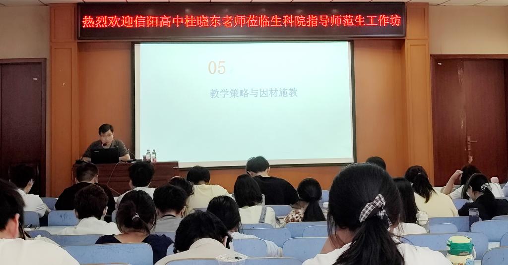 6月11日上午,河南省优秀教师、信阳高中桂晓东应我院“名师引领——河南省生物科学专业师范生联合培养与实践工作坊”的邀请,在生物楼414报告厅举办了一场题为《生物课堂中的学情分析和因材施教》的讲座。讲座由我院院长、工作坊负责人饶本强主持。