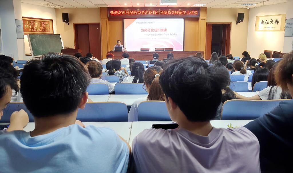 6月11日晚,应我院“名师引领——河南省生物科学专业师范生联合培养与实践工作坊”的邀请,我校马克思主义学院陈杰老师在生物楼414报告厅做了题为《为师范生成长赋能——关于师范生成长工作坊建设的思考》的专题讲座。我院工作坊教师和生物科学专业师范生聆听了讲座。讲座由副院长彭波主持。