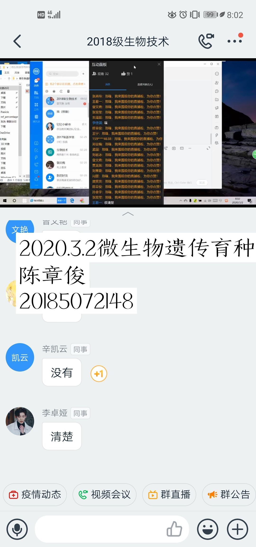 为减少疫情对学生学业的影响,引导学生进行自主学习,确保教学工作正常有序开展。我院以”停课不停学”的理念为基础,积极组织师生开展线上教学活动。刑峰是2018级生物技术班《微生物遗传育种》的任课教师,为了让同学们可以提高学习效率,实现更好的学习效果,可以将刑峰老师的教学总结为四个方面:亦“教”亦“学”;与学生交流、交心;学以致用、尽职尽责;爱国教育;