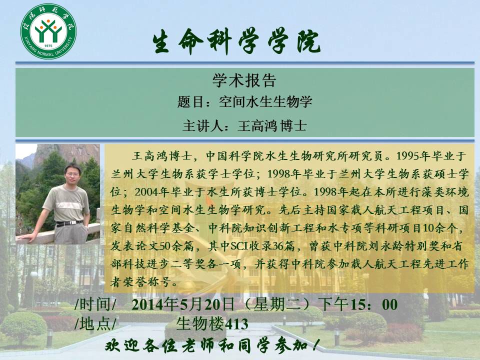 中科院水生生物研究所王高鸿博士学术报告预告