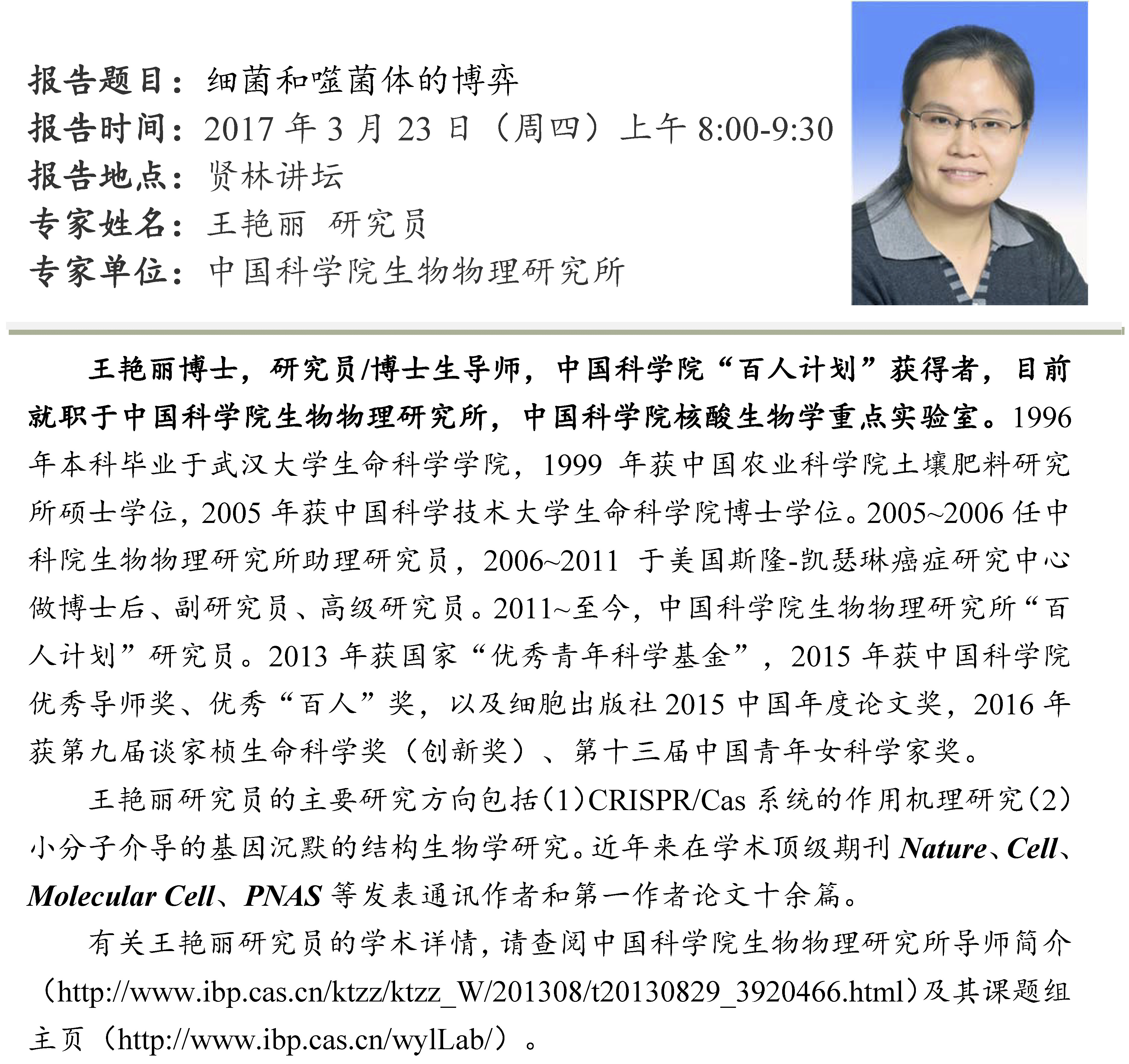 生物学前沿高端讲座报告会预告(三)