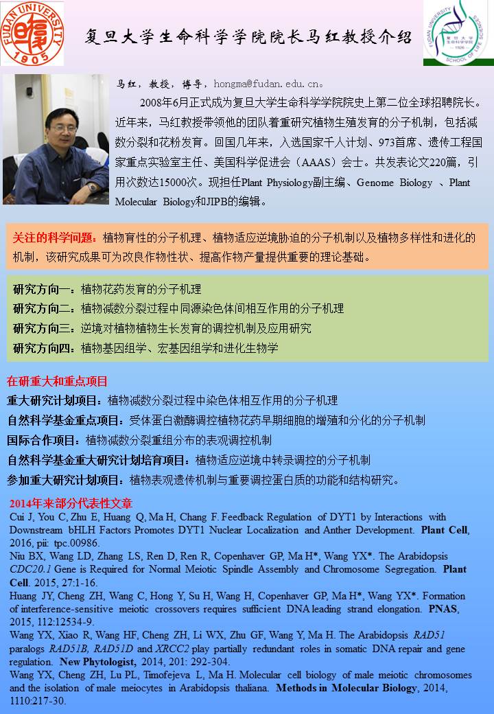 报告题目:从植物生殖发育的基因功能和进化研究到被子植物系统关系重建