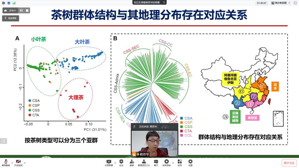 夏恩华教授还向大家推荐了他们团队构建的茶树信息档案开放数据平台,该平台包含茶树基因组数据信息,并整合了目前几乎所有公布的茶树转录组、代谢组数据和部分实验验证的功能基因等数据。最后,夏恩华教授对近三十年来茶树分子生物学的研究进展进行回顾,指出了今后茶树分子生物学研究的重点。
