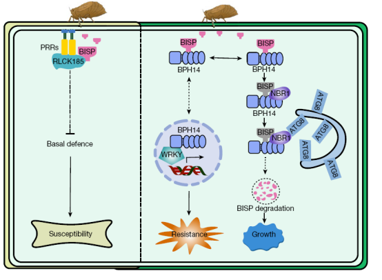 本研究由武大大学杂交水稻全国重点实验室何光存教授课题组完成,荆胜利博士作为研究团队骨干成员参与完成的部分研究工作。该成果首次鉴定了一个被植物免疫受体蛋白识别的昆虫效应子BISP,并揭示了BISP-BPH14-OsNBR1互作精细调控水稻抗虫反应的分子机制,对于培育高产、抗虫水稻品种具有重要意义。