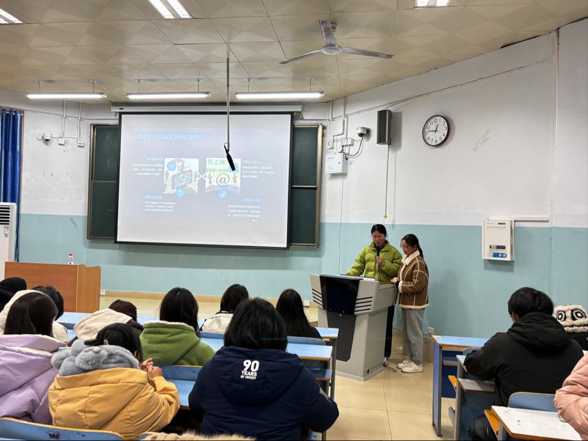 活动伊始,主讲人为同学们强调了网络安全和网络文明的重要性及其现状,并通过多方面强调网络安全及共享网络文明的必要性。活动过程中,运用多种生活中的事例为同学们讲解何为网络安全技术与网络文明建设,同时介绍了其发展趋势,讲解文明上网规范和网络安全的重要性。向同学们普及网络文明和网络安全基本知识以及相关法律法规,提醒同学们谨防个人信息泄露和防范电信网络诈骗,增强网络安全防范意识,引导同学们依法上网、文明上网、理性上网。活动最后,深入分析了网络安全意识与网络文明的关系并为其发展提供建议和展望。