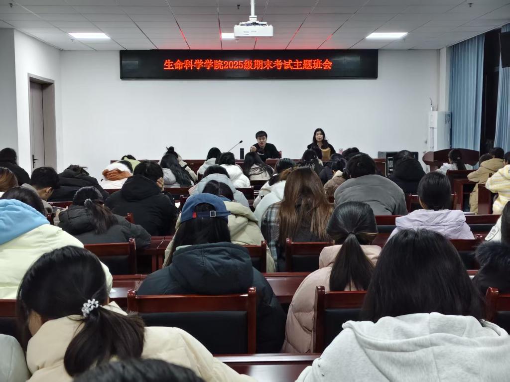 为严肃期末考试纪律,强化新生诚信应考意识,12月25日晚,我院于敏思楼418会议室召开2025级期末考试主题班会,将考风考纪强调作为核心内容,为期末考务工作平稳推进筑牢根基。会议由2025级专职辅导员张博主持,专职辅导员张阳阳及2025级全体新生参加会议。
