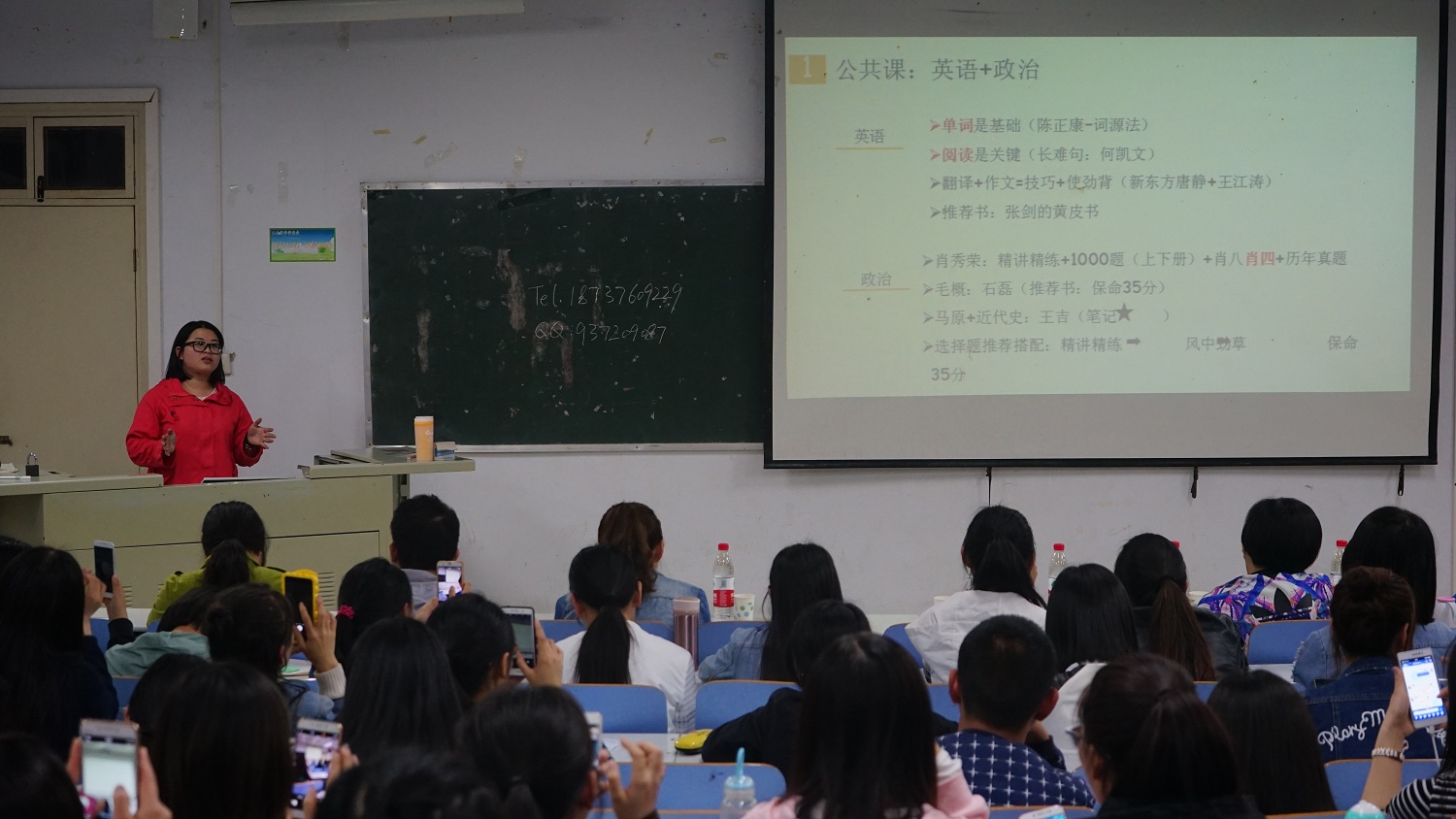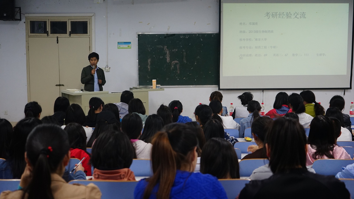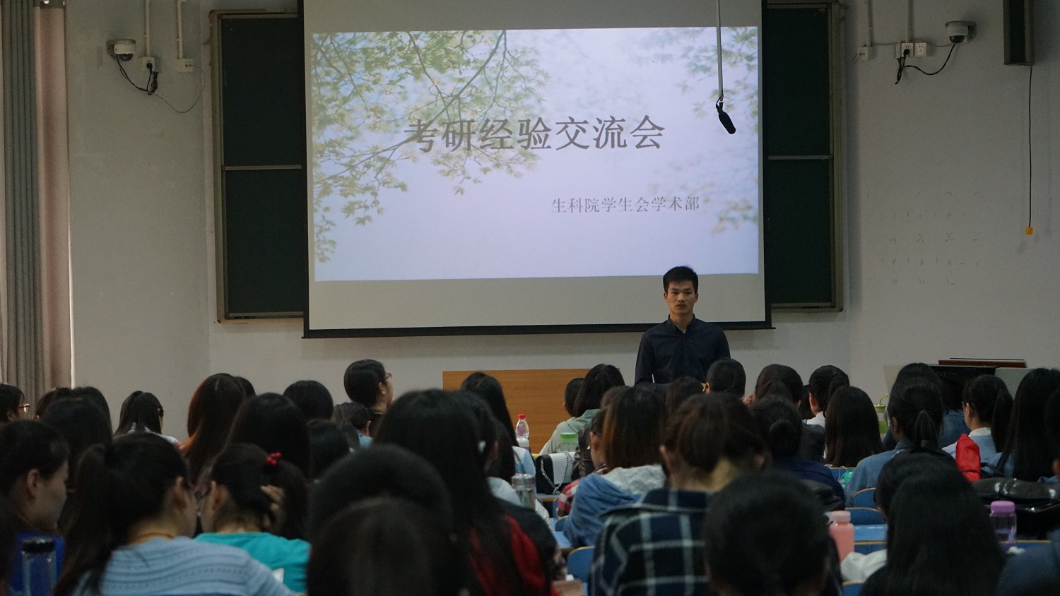 为进一步提高我院2018届学子的考研热情,明确考研目标,掌握相关考研技巧,了解更多考研信息,4月20日至22日,我院学生会学术部相继于教九楼305教室、生物楼414教室成功举办了考研经验交流会。期间,院长助理徐永杰,团委书记孙太红等领导老师亲临现场,与数百名学子共同聆听优秀考研学子畅谈考研历程。