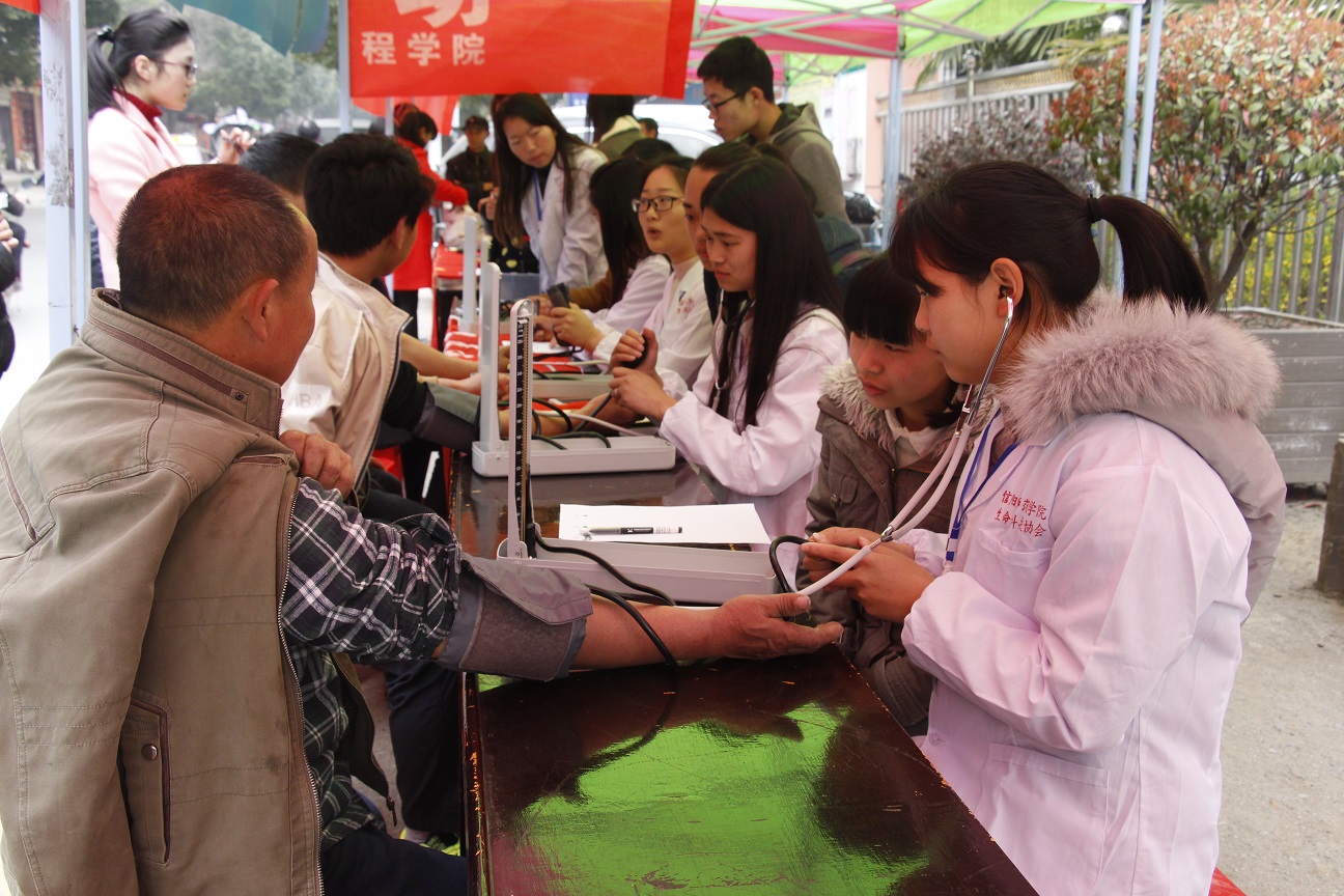 践行社会主义核心价值观,传承雷锋精神。3月11日上午,我院生命科技协会协同电脑爱好者协会、电子信息协会前往信阳市飨堂社区为当地居民义务服务,我院依托专业知识,为居民们义务会诊,并普及健康小知识。