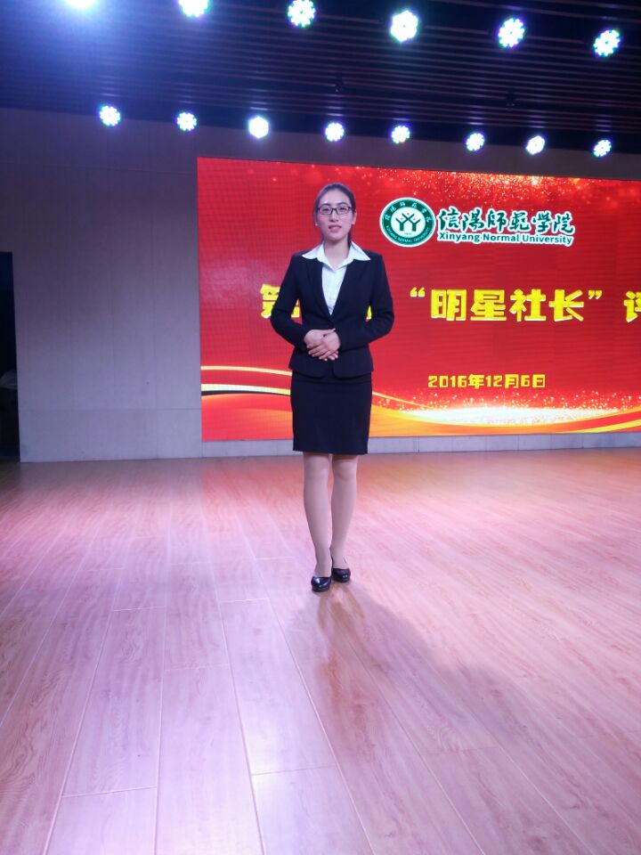 出生在河南省新乡市的宋珊珊,曾担任校生命科技协会会长,在担任会长期间与全体理事会成员积极准备,筹划各项活动;2015年11月与校医院联合举办大型“义务量血压、测血型”活动,并与校红十字会、校医院联合举办了“行动起来、向零艾滋迈进”活动;2016年4月与社团联合会等组织联合举办了大型公益环保系列活动,包括“环保酵素,走进校园”活动等;2016年5月,联合校园环境巡查队等,举办了“绿色校园行”之植物标本创意制作大赛重点立项活动,积极参与由后勤管理处主办的“2016节能领跑,绿色发展”主题活动,成功申请2016高校防艾基金项目。她所带领的社团在2015年度社团联评中荣获“优秀社团”荣誉称号。大学期间,她曾获得2014―2015学年国家励志奖学金,荣获校“三好学生”、“优秀共青团员”、社团联合会“社团活动积极分子”、“优秀社团干部”、暑期三下乡社会实践活动“先进个人”等荣誉称号。宋珊珊在今后的生活中也会志存高远,奋发图强,再接再厉,坚持到底,不断提升自我修养,更好地发展。