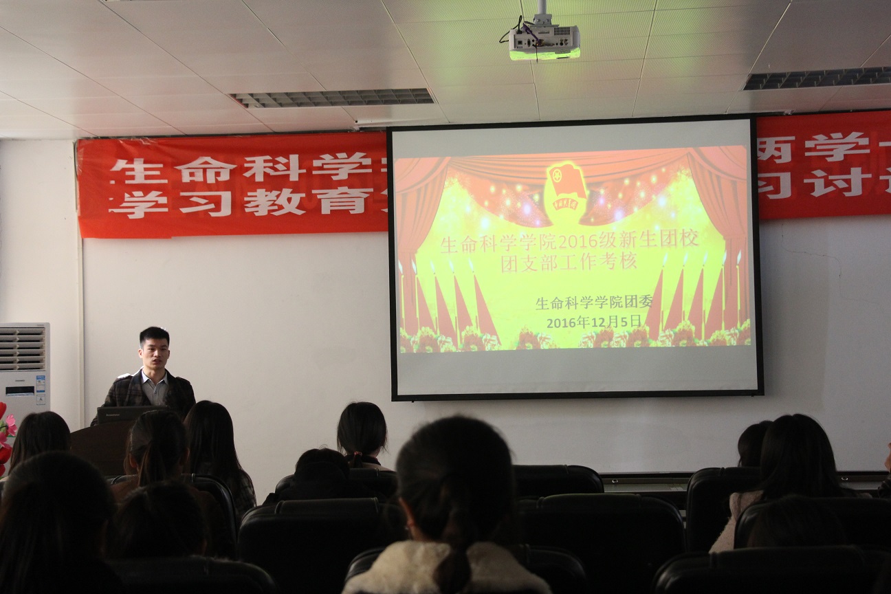 为检验2016级新生团校培训成果,12月5日中午,我院2016级新生团校团支部工作考核大会于生物楼412会议室顺利开展。各年级辅导员以及2015级、2016级团干部参加了此次会议。会议由院团委书记孙太红主持。