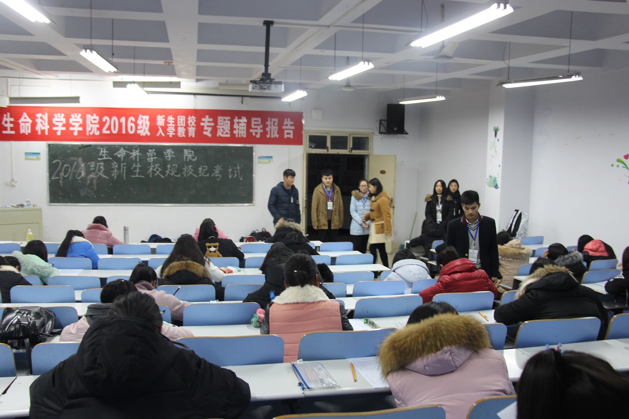11月22日晚,我院于生物楼、教九楼等教室以班级为单位进行了2016级新生校规校纪考试。
