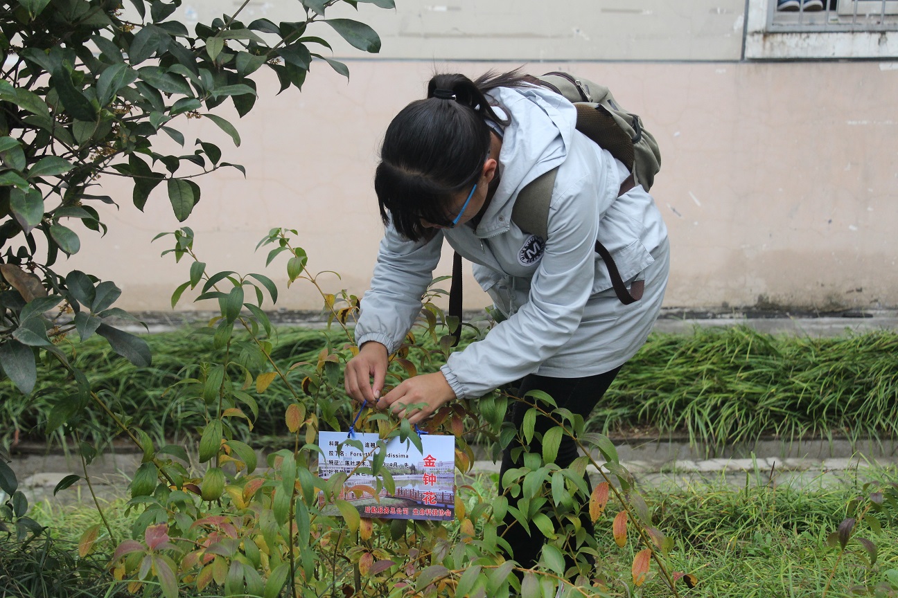 活动伊始,卢老师进行讲话,他希望同学们能够利用此次机会,增加对学校的了解,认识大自然。该协会的相关人员为新成员分发提前准备好的标注有植物名称、所属科属及主要特征的标识牌。随后,他带领同学们游览了校园,认识了学校中的植物。在此过程中,卢老师细致地讲述校园植物的名称、科属以及特点,方便同学们快速地认识并了解各种植物,而同学们认真聆听,并为它们亲手挂上标识牌。