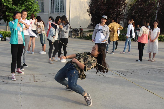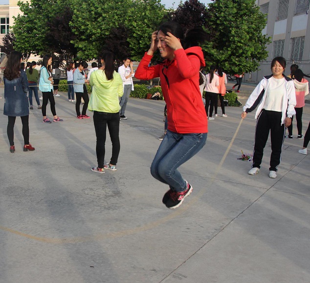 生物科学一班的同学们积极挑战“极限过杆”、“花式跳绳”等游戏。