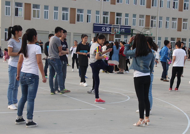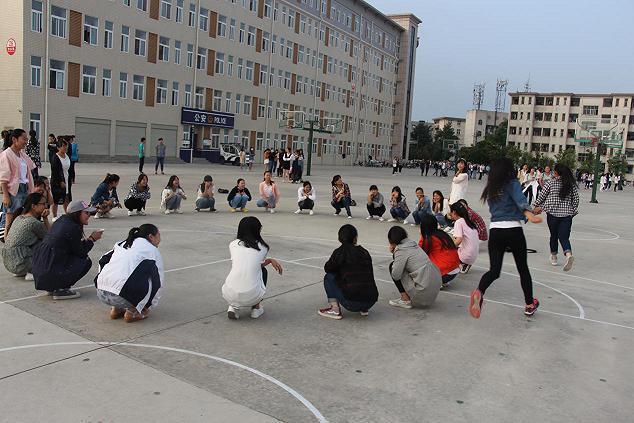 生物技术班、生物制药班和茶叶检测班也进行着“踢毽子”、“丢手绢”以及“砸毽子”等小游戏,场面热闹非凡。