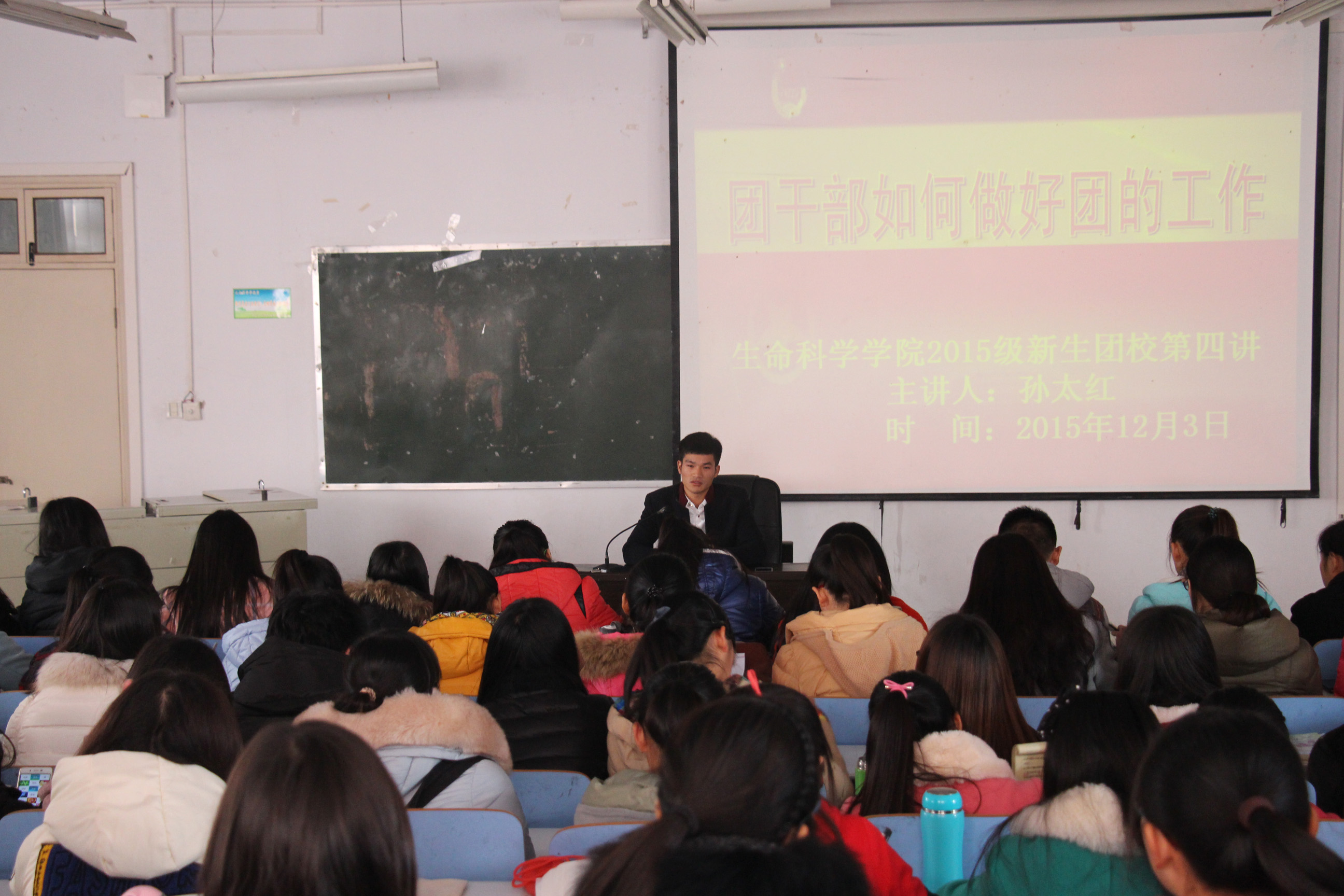团聚心得路,携手共成长。12月3日,bevictor伟德官网于生物楼414教室成功开展2015级新生团校第四讲,该次报告的主题为“团干部如何做好团的工作”。bevictor伟德官网团总支书记孙太红担任主讲人,该院团总支学生会全体新生团干部共同聆听了报告会。