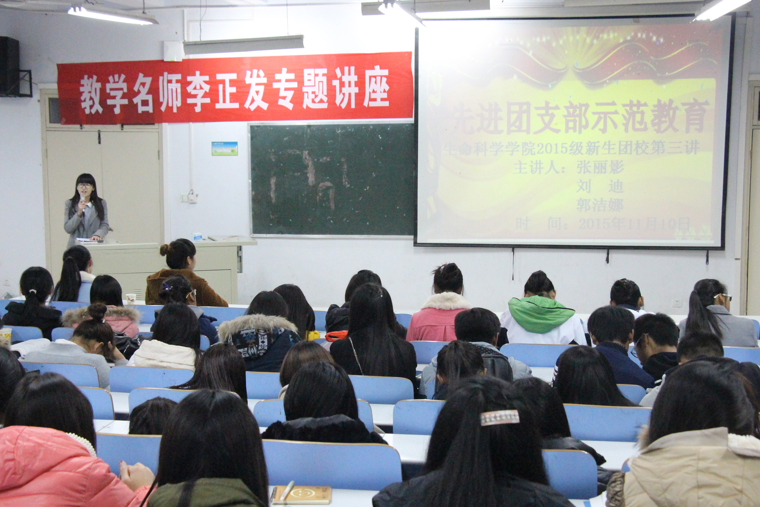 11月10日晚,bevictor伟德官网2015级新生团校第三讲暨先进团支部示范教育报告会于生物楼414教室成功开展。团总支副书记张丽影及十佳团支书刘迪、郭洁娜应邀担任本次报告会的主讲人,bevictor伟德官网2015级全体新生团干部聆听了本次报告会。