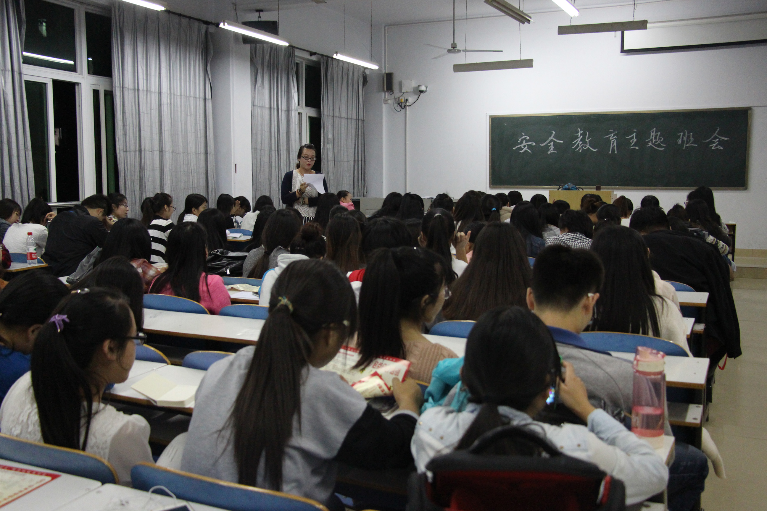 10月15日晚,2014级辅导员熊蕾从安全知识、安全防范、遵纪守法等方面对学生进行安全教育。同时,同学们踊跃发言,发表了对安全教育的感想。班级里教育气氛浓厚,使同学们受到了一次很好的安全教育,增强了安全意识和自我保护意识。同学们都展现出新时期大学生积极向上的精神风貌,主题班会收到了良好的教育效果。