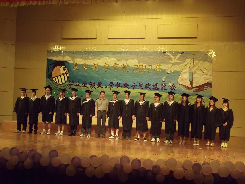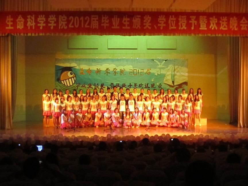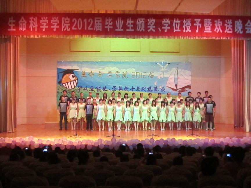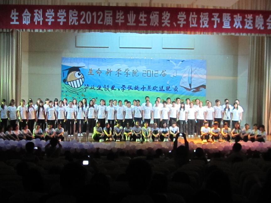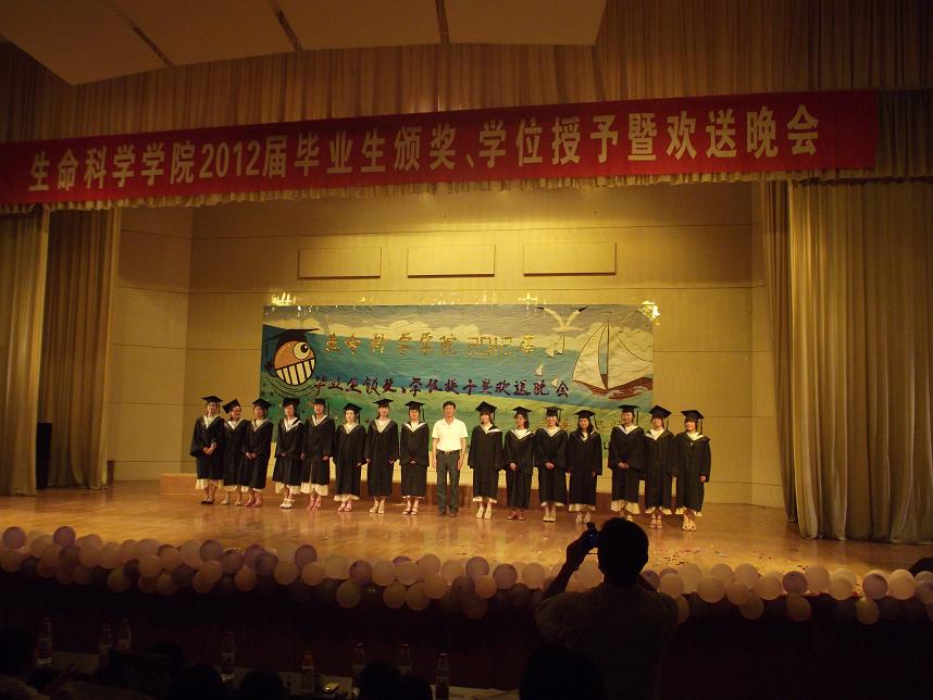 点亮青春记忆,唱响六月离歌。6月4日晚,我校艺术楼音乐厅灯火璀璨、歌舞飞扬,bevictor伟德官网2012届毕业生颁奖、学位授予暨欢送晚会在这里隆重举行。生科院党总支书记李锐,院长赵万鹏,副院长袁红雨、党总支副书记赵东,副院长张苏锋等领导老师携生科学子共同观看了本场晚会。