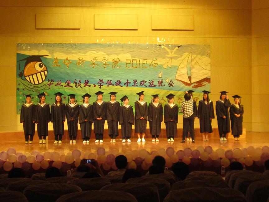 晚会在激情四射的爵士舞《舞++》中拉开帷幕。整场晚会分为“歌舞串演、学位授予仪式、毕业合唱”三个环节,谱写出一曲唯美盛大的毕业风采颂。歌舞串演中,《never let you go》《不要不要》等舞蹈动感十足,使晚会一开始就博得了现场观众的如雷掌声;歌曲串烧《隐形的翅膀》《看得最远的地方》《信阳师院的日子》深满怀情,倾情演绎了青春里难以割舍的微痛记忆;钢琴独奏《卡农C大调变奏曲》或舒缓有韵,或如流水淙淙,将现场观众带入了一个微妙的音乐世界;诗朗诵《青春的记忆》取材于校园生活场景,将晚会再次引入离别主题。紧接着,赵万鹏教授、袁红雨教授、王金平教授、黄斌教授为生科院2012届毕业生扶正流苏。随后,2008级四个班级分别用毕业合唱诠释满心的不舍与感慨。歌曲《启程》《放心去飞》《祝你一路顺风》等深切表达了毕业生对母校、老师、同学的深深眷恋和感恩。她们的歌声牵动了在场每一位观众的心,许多同学在感受着离别气氛时不禁潸然泪下。最后,在毕业生们的邀请下,各位领导老师分别与2008级学子进行了合影留念,留下了大学里最难忘的瞬间。