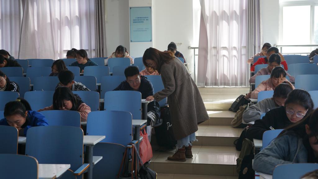 为响应国家号召,帮助学子树立国防观念,激发爱国热情。11月14日,我院于生物楼414多媒体教室、教九楼305教室开展国防安全知识竞赛初赛,专职辅导员朱晓雯带领部分学生干部前往考场进行巡视检查。