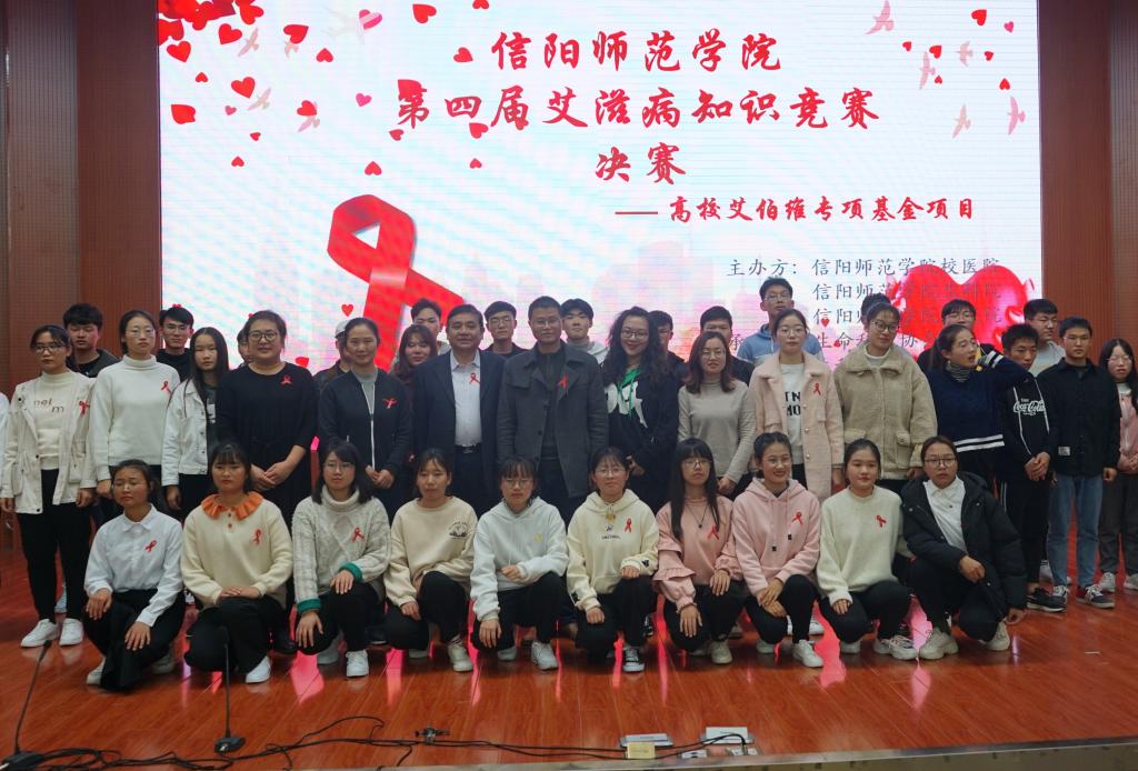 为普及艾滋病预防知识,增强学子们对艾滋病的防治意识。由信阳师范学院校医院,国际教育学院,bevictor伟德官网主办,生命科技协会承办的第四届艾滋病知识竞赛决赛于11月23日在逸夫楼报告厅举办。校医院院长张景伟,校医院办公室主任陈震,我院党委副书记杨霁虹以及团委书记熊蕾等领导老师应邀出席现场,与数百名学子共同观看此次比赛。