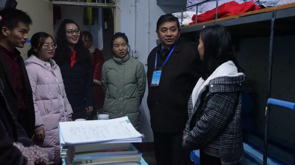 小雪节气以来,天气渐寒,按照学校《关于进一步加强冬季大学生安全教育管理的通知》的要求,11月28日晚9点,我院党委副书记杨霁虹和辅导员老师熊蕾、孙太红、杨娟娟、朱晓雯以及学生会主要干部,对我院4个年级大学生宿舍进行排查。