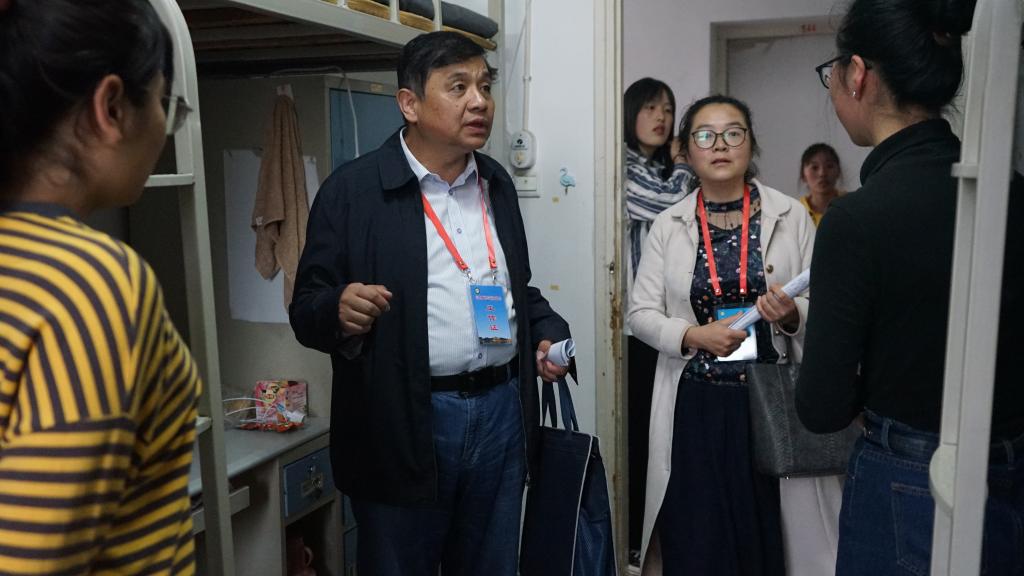 为了解新生在校住宿和生活情况,帮助新生尽快适应大学生活,加强宿舍安全教育。10月10日下午五点,我院党委副书记杨霁虹,2020级专职辅导员李敏和部分学生干部走访新生宿舍。