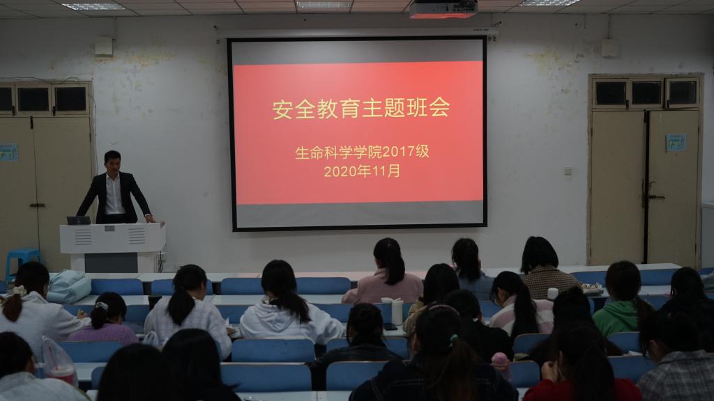 为进一步加强安全教育,增强学生自身安全防范意识,近日,我院2017级各班在生物楼414多媒体教室召开安全教育主题班会。班会分别由2017级专职辅导员朱晓雯、孙太红主持。