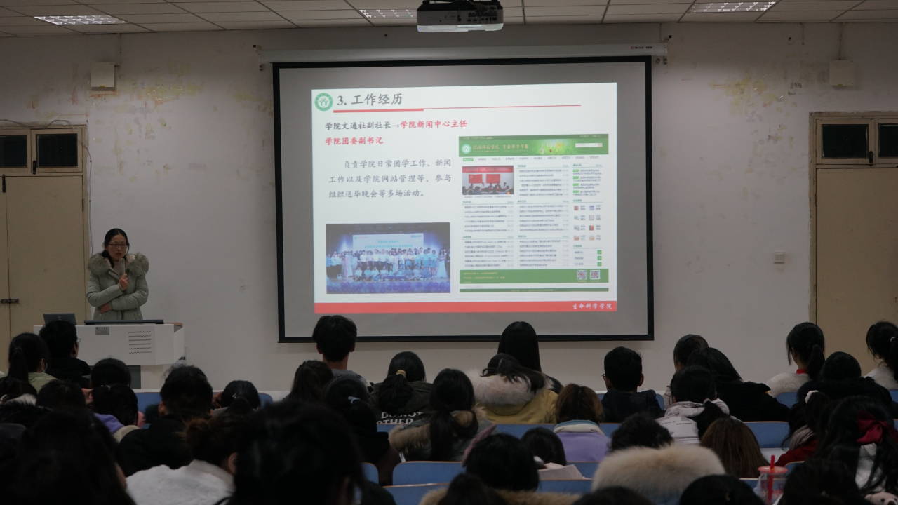 为帮助新生端正学习态度,进一步提高其科学文化素养,12月21日,我院于生物楼414多媒体教室举办明星故事分享会,院团委副书记康菡,志愿服务中心主任朱星星参与此次会议,并邀请到2020级硕士研究生张玉、2018级生物制药班李春洋分享其优秀个人事迹。2020级学子到场聆听。