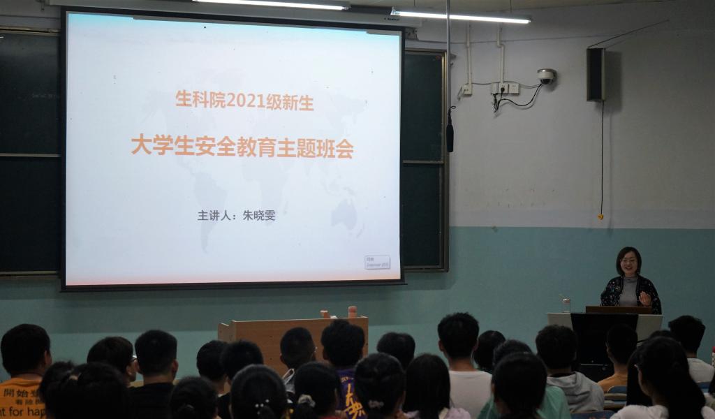 朱晓雯围绕人身安全、财产安全、心理安全、宿舍安全、实验室安全、新冠疫情防控安全六个方面展开安全教育的讲解。她列举了大学生在校常见的安全问题,通过举例高校真实案件提醒在座学子校园安全的重要性。只有防而不实,没有防不胜防。讲解中,朱晓雯告诫大家:不轻信陌生电话和短信,警惕非法传销和网络诈骗,远离“校园贷”等不良网络贷款,遵守宿舍用电管理规定,确保自身人身财产安全。根据我校的学生管理条例讲述校规校级,她叮嘱新生要转变学习观念,学好专业知识,树立远大的理想目标,并向新生讲解了国家奖学金、助学金的发放标准。最后,她强调大家要遵守学校秩序,履行学生的权利和义务,积极参加课外活动。
