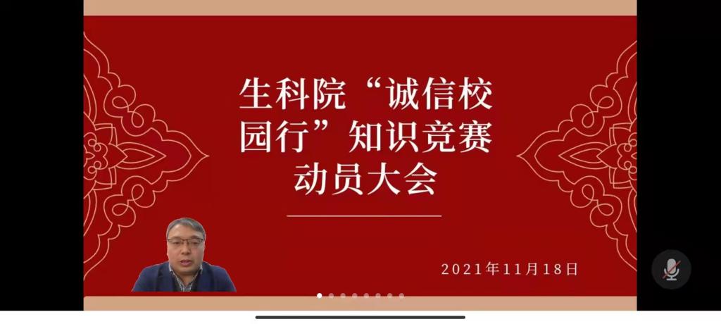 为大力宣传我校在资助育人领域的工作经验,提高我院学子对我省资助政策的认识,以经济资助和精神激励并重的助学观念,培养大学生励志自强、诚信感恩的良好品质,我院积极响应学校号召,加入“诚信校园行学生资助知识竞赛”活动。11月18日下午四点,我院于线上进行本次活动动员大会,生科院党委副书记荣宪举、资助专员李敏参加动员会并分别讲话,我院志愿服务中心助贷部承办,全体有关学生参加。
