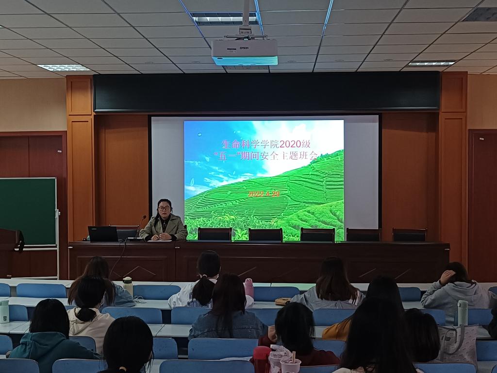 为了提高学生的安全防范意识,增强学生的行为规范,提升学生的疫情防控意识,4月29日下午,我院于生科楼414召开2020级“五一”假期安全主题班会,由2020级专职辅导员李敏主持,全体2020级学生参加班会。