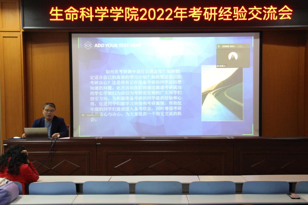 为让更多的同学了解到考研的意义,明确考研的目的,进一步激发我院学子的考研热情,增强其考研信心。4月28日、29日晚,我院采用线下线上相结合的形式开展了“芳华待灼,砥砺致远”考研经验交流会,学院党委副书记荣宪举、2018级专职辅导员熊蕾、学院教学秘书胡月参加了会议。