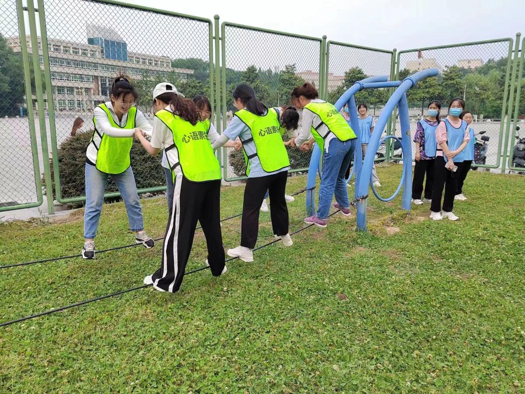为了提高大学生的心理健康素质,培养其乐观的心态和坚强的意志,增强集体荣誉感意识和团队合作精神。5月7日上午,我院于青年广场心语素拓园开展了心理素质拓展活动,2021级专职辅导员朱晓雯及2021级部分学生共同参与活动。