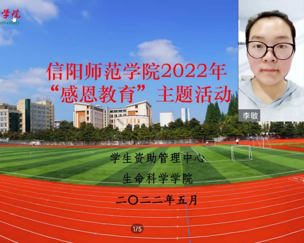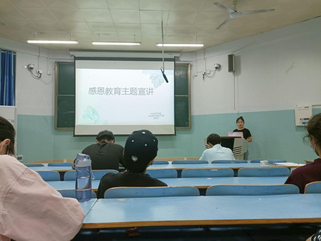 为积极响应学校开展关于学生感恩教育主题活动的相关号召,引导学生树立正确价值观念,增强同学们的社会责任感,加强对学生的感恩励志教育。我院助贷部于5月7日晚上七点,通过线上线下相结合的方式,分别在生科楼414多媒体教室和腾讯会议举办了“感恩教育”主题活动,本次会议由我院资助专员李敏主持,2018级生物科学1班张世浩和2018级生物科学2班遆怡寒受邀进行宣讲,部分学生参加。