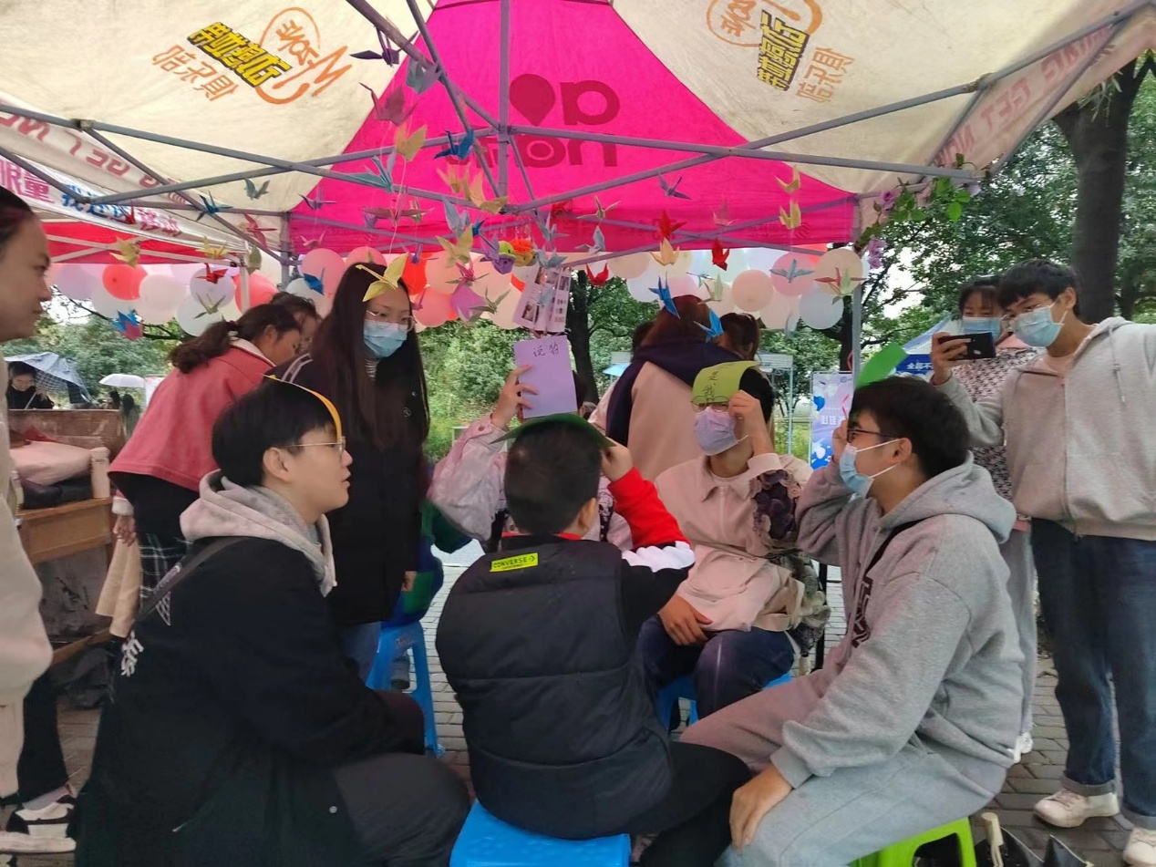 本次心理游园会活动采用个人与团体相结合的游戏模式,鼓励每位同学参加,让同学们在畅游心灵家园的过程中寻找真实自我,拥抱健康心灵。游戏主要分为“隐秘的自己”,“色眼识字”,“跳绳传乒乓球”,“魔力投投乐”,“不要做挑战”五个环节。其中在“隐秘的自己”环节里,参与者可以测试出心理年龄,找到最真实的自己和最适合自己的职业;“色眼识字”环节需要挑战者依次读出图片上各字的颜色,考验了挑战者的反应能力;“跳绳传乒乓球”环节则要求参与者相互配合将乒乓球由一侧传至另一侧,经过两个来回即为成功,培养了参与者的合作意识,增进了同学之间的感情。通过游戏时的交流互动,同学们在欢声笑语中释放学习和生活上的压力,提高了心理保健意识和心理调适能力。同时,正值学习党的二十大精神之际,心理游园会的举办亦助力大学生健康成长,完成校园育人的使命,激发学生们的爱党爱国热情。