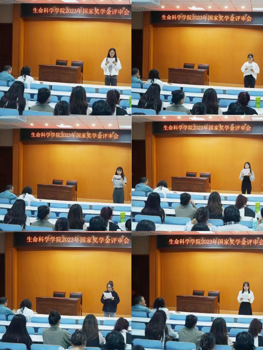 为切实做好学校关于2023年本科生国家奖学金评审工作,进一步形成竞争激励机制,充分发挥榜样引领示范作用,强化奖助育人的功能和效力,激励广大学生发奋学习、全面发展、立志成才。我院于9月23日上午在生科楼414举行了2023年国家奖学金答辩评审会,本次会议由党委副书记荣宪举主持,分团委书记熊蕾参加会议,本科生代表出席评审会并担任评委。