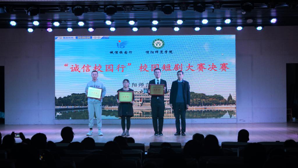 为积极贯彻落实诚信校园理念,宣传倡导优良诚信作风,12月12日,我校于理科楼报告厅举办“诚信校园行”校园短剧大赛决赛。校党委副书记郜火星,校学工部部长岳宗德,我院党委副书记杨霁虹等领导老师与众多学子共同观看此次比赛。
