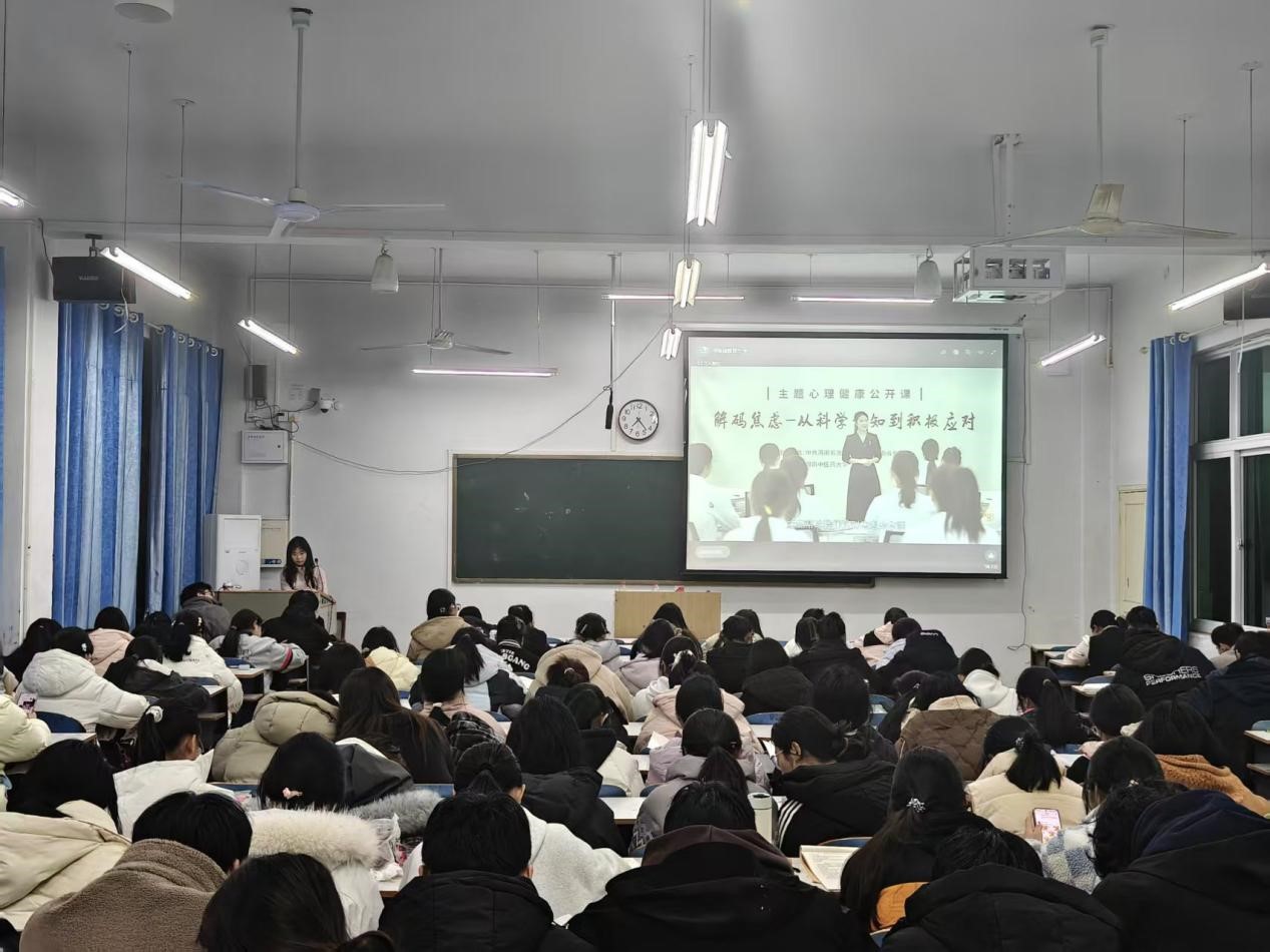 为帮助学生科学认知焦虑情绪,缓解期末考试心理压力,筑牢心理健康防线,12月16日,我院组织2025级学生集体观看河南省教育厅视频号直播“解码焦虑——从科学认知到积极应对”主题心理健康公开课。