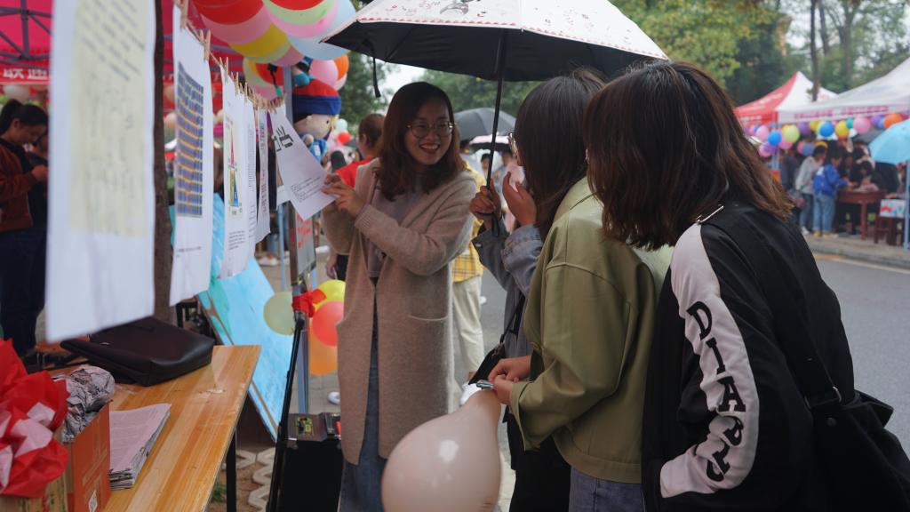 为增进学子间沟通交流,帮助新生尽快适应大学,以积极阳光的心态投入学习、生活中。10月22日下午,由我校学工部大学生心理健康教育中心主办、我院学生会心理部承办的心理游园活动在思齐路顺利开展,吸引众多学子前来参加。
