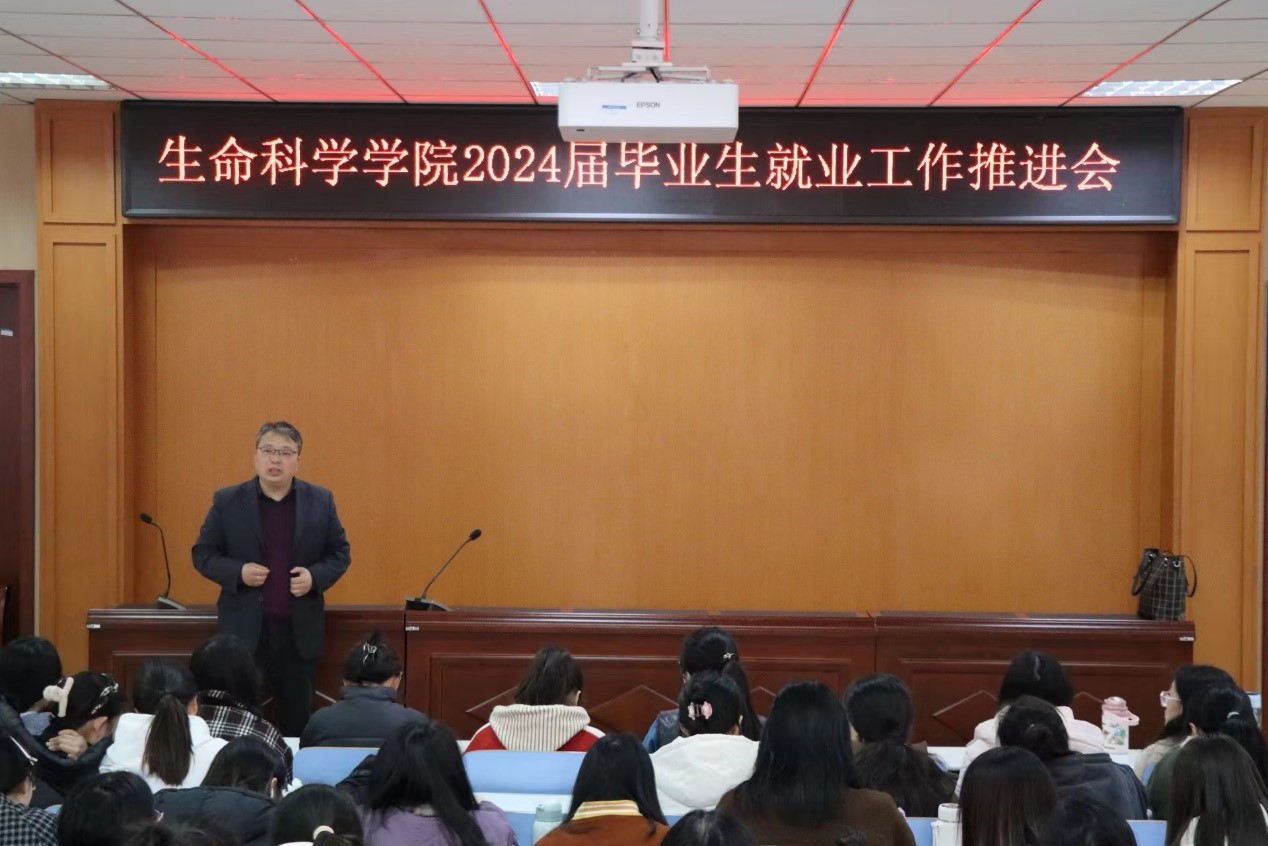 为进一步做好我院2024届毕业生就业服务指导工作,促进毕业生高质量就业,3月13日上午,我院于生科楼414召开2024届毕业生就业指导会。学院党委副书记荣宪举、2020级专职辅导员李敏以及2024届全体毕业生参加本次会议。会议由党委副书记荣宪举主持。