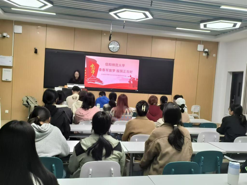 为鼓励更多大学生积极响应国家号召,投身军营,为国家安全和发展贡献自己的力量。10月25日,我院于教九209教室召开毕业生征兵工作宣讲会。会议由我院2021级辅导员盛梦茹主持,2021级毕业生参加会议。