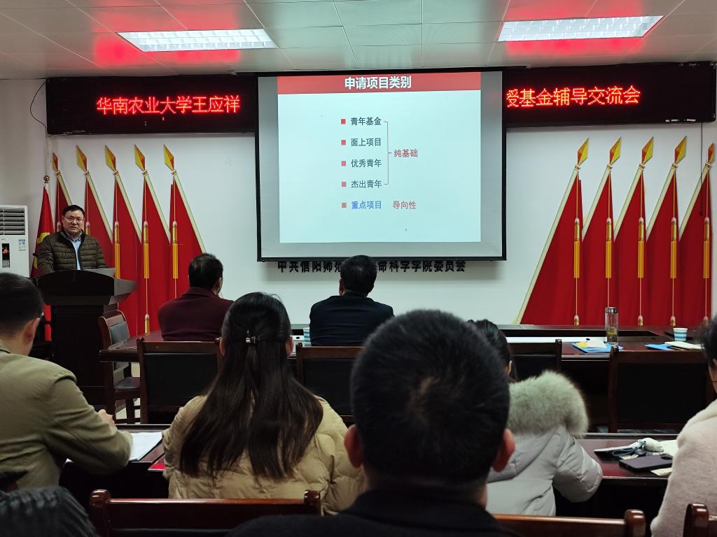 2023年11月30日,应bevictor伟德官网邀请,华南农业大学王应祥教授来我院指导国家自然科学基金申报工作。基金申报辅导报告会在412会议室举行。院长饶本强教授、副院长周棋赢及青年教师代表参加报告会。