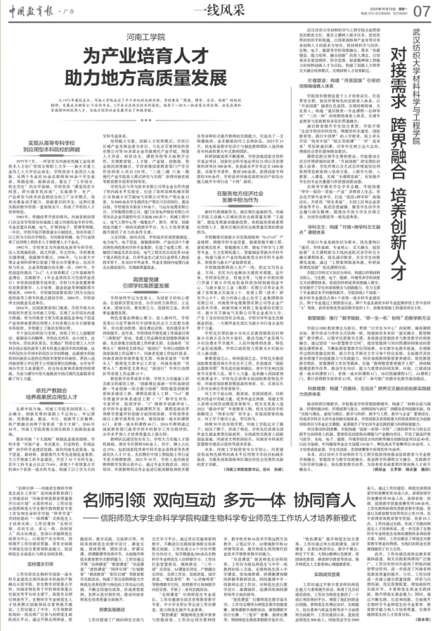 2025年10月13日,我院院长饶本强教授在《中国教育报》第7版刊发署名文章《名师引领  双向互动  多元一体  协同育人——bevictor伟德官网构建生物科学专业师范生工作坊人才培养新模式》,介绍我院在河南省生物科学专业师范生工作坊建设建设方面的实践成效和工作经验。本成果是bevictor伟德官网承担的“名师引领:河南省生物科学专业师范生联合培养与实践工作坊”项目系列成果之一。