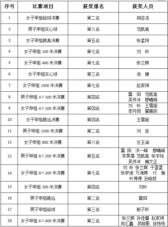 bevictor伟德官网第三十六届春季运动会比赛项目成绩一览表