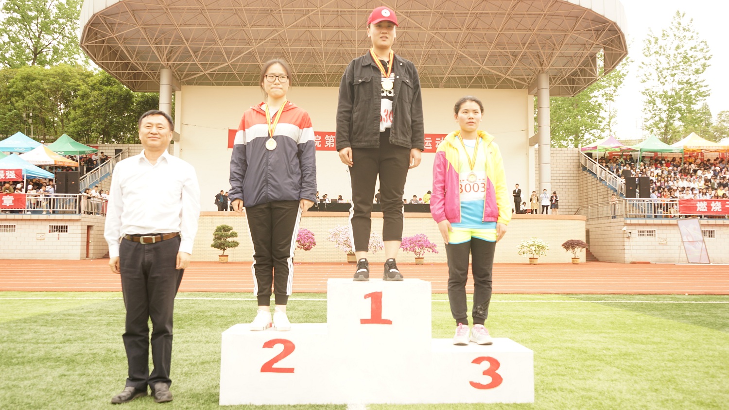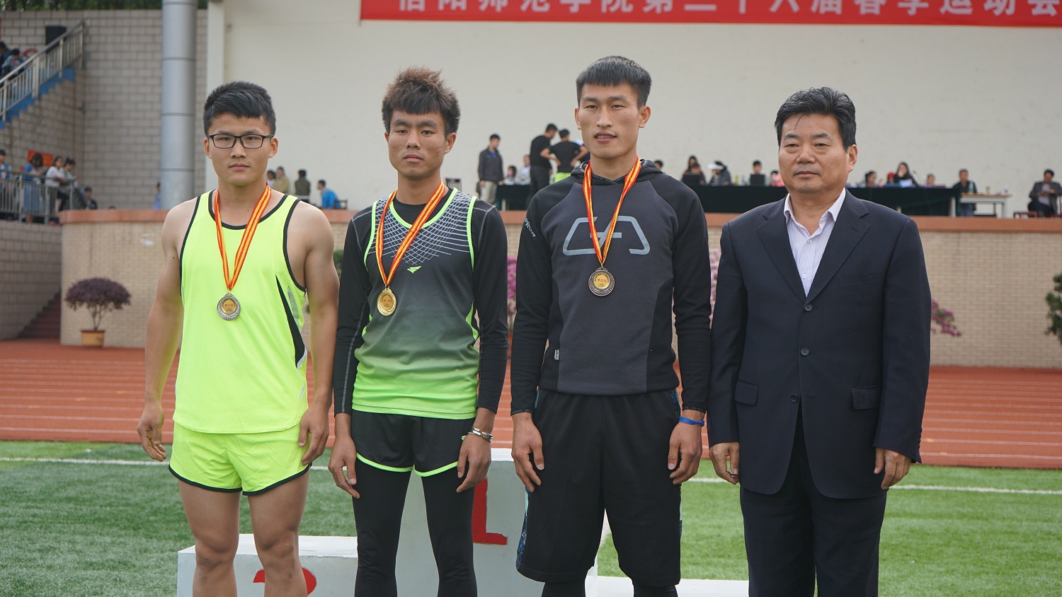 副校长齐城为男子甲组跳远获奖选手颁奖。